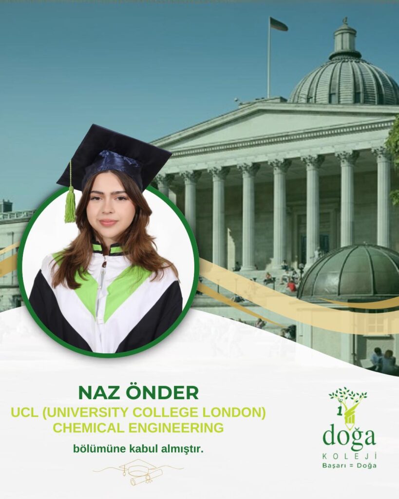 Öğrencimiz Naz Önder, dünyanın en saygın üniversitelerinden UCL (University College London)’da Chemical Engineering bölümüne kabul edil...