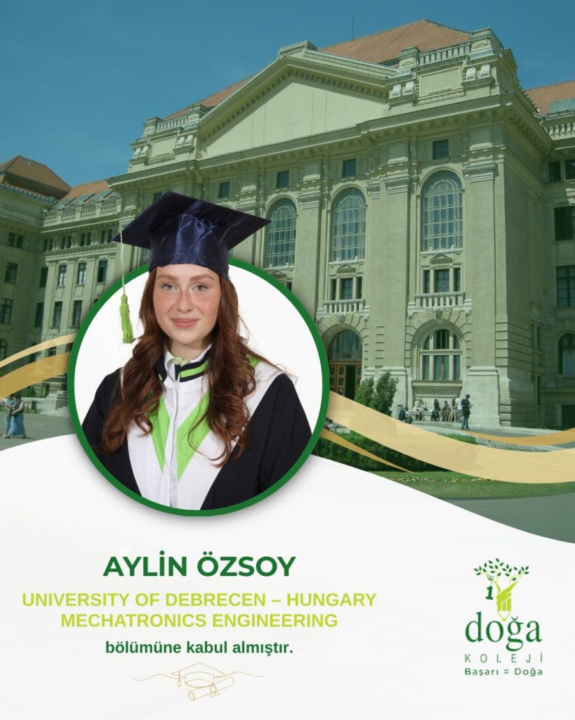 Öğrencimiz Aylin Özsoy, University of Debrecen – Hungary’de Mechatronics Engineering bölümüne kabul edildi! ⚙️🤖