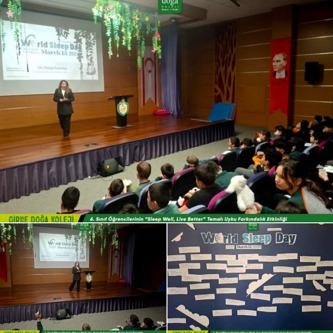 Girne Doğa Koleji 6. sınıf öğrencileri, World Sleep Day (Dünya Uyku Günü) kapsamında düzenlenen “Sleep Well, Live Better” temalı uyku farkındalık etkinliğine katıldı.